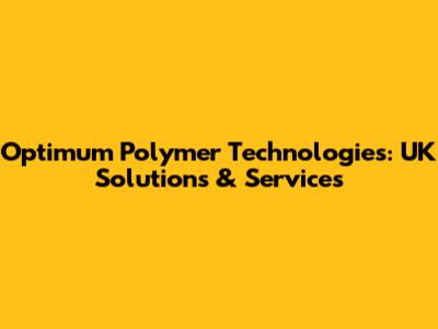 Hey guys! Let's dive into the world of Optimum Polymer Technologies in the UK. If you're in the market for cutting-edge polymer solutions and services, this is your spot. We’re going to break down what Optimum Polymer Technologies is all about, what they offer in the UK, and why they might just be the perfect fit for your needs. Whether you're an engineer, a manufacturer, or just curious about material science, stick around – this is gonna be good!