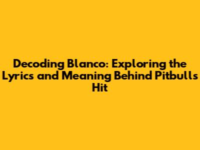 Hey guys! Ever found yourself nodding your head to a Pitbull track, feeling the rhythm, but maybe scratching your head a little when it comes to the lyrics? Well, let's dive into one of his popular hits, "Blanco." We're going to break down the lyrics, explore the meaning, and see what Mr. Worldwide was really trying to say. Buckle up, because we're about to go on a lyrical adventure!